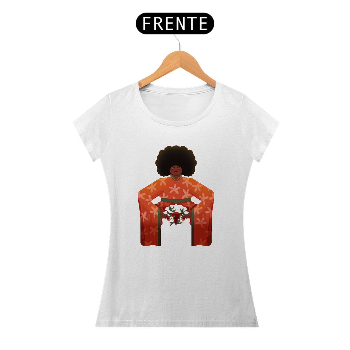 Ao vestir esta estampa, você declara que o útero é centro de força criativa, autocuidado e fertilidade; celebra a diversidade feminina ao exibir uma mulher negra que honra suas raízes; une ciência integrativa e sabedoria botânica nas flores e folhas que simbolizam cura natural; transmite equilíbrio corpo-mente pela postura serena de mão-sobre-ventre; e inspira orgulho pelos ciclos, convidando ao respeito pela saúde ginecológica. Quem a usa comunica ao mundo poder, inclusão e amor próprio enraizados na conexão entre natureza e ancestralidade.